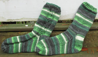 Ja nää on IHANAT! Harmittaa, kun en voi tuoda tuota lampaan tuoksua ruudulle ja sitä ihanaa tuntua. Kädetkin pysyisivät hyvässä kunnossa, kun neuloisin aina näin rasvaista lankaa. Kädessä ihan hohkaavat lämpöä. Lisää tällaista! Onneksi tekemäni vaihto oli hyvä, ja sain samaista lankaa aika paljon muutenkin, ison vyyhdin vihertävää ja 2 pienempää vyyhtiä luonnonvalkoista. En usko koskaan kutoneeni näin maanläheistä lankaa aiemmin.