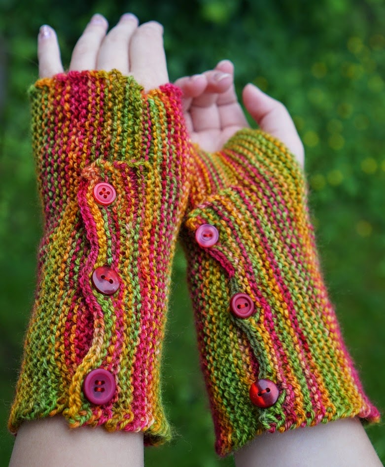 Tuli vaan tosiaan neulottua kaksi vasemman käden kämmekästä. Moka johtuu siitä, että työn suunta kehittyi tehdessä ja nappi-idea tuli vasta loppuvaiheessa. Jos totta puhutaan, ompelin ensin toisen kämmekkään napit työn väärälle puolelle ja jos olisin jättänyt ne siihen, kaikki olisi ollut ok. Mutta kiroten irrotin napit ja siirsin ne oikealla puolelle, tässä lopputulos. Inhoan nappien ompelua sen verran paljon, etten enää jaksa tilannetta korjata. Ei se täällä kotona haittaa kumminkaan. Pikkasen ärsyttää vaan.